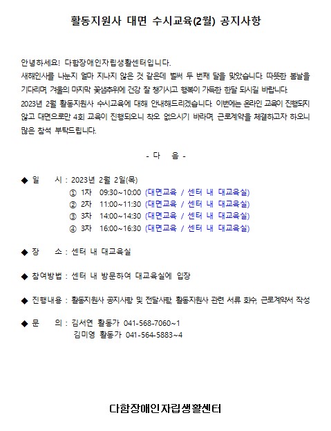 > 게시판 > 공지사항 ≫ 활동지원사업